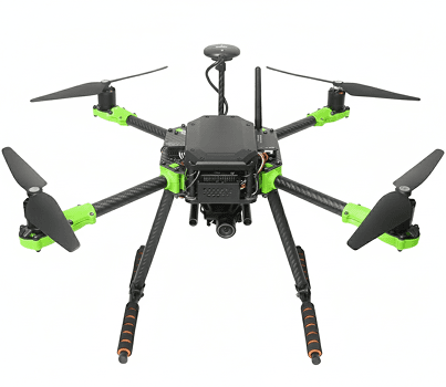 A modular multirotor drone designed for reliable operation in challenging RF environments.